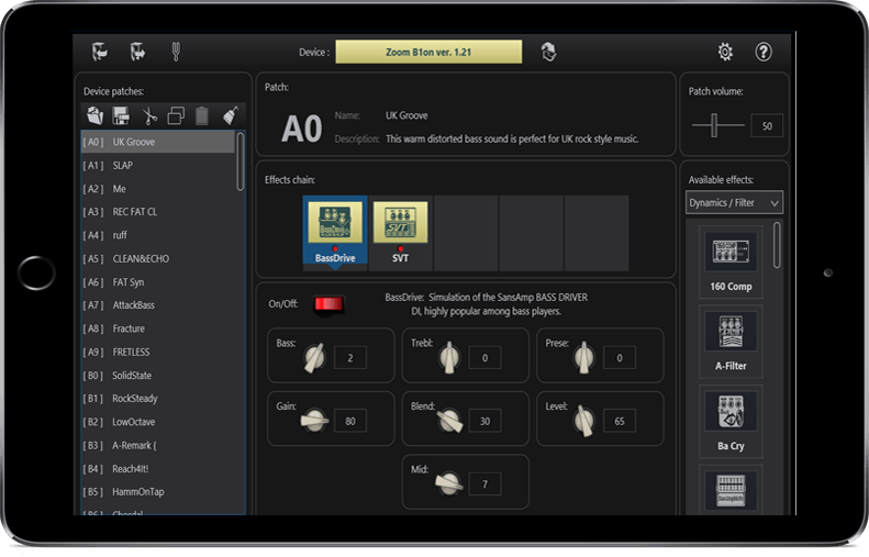 Tonelib Zoom - это простое в использовании приложение, которое позволяет просматривать, изменять и сохранять все настройки вашей гитарной педали Zoom через компьютер. Вы также можете создавать полные резервные копии всех тонов в вашем устройстве и возвращаться к ним, когда захотите. Вы даже можете поделиться своими патчами с другими или использовать классный патч, созданный кем-то другим.